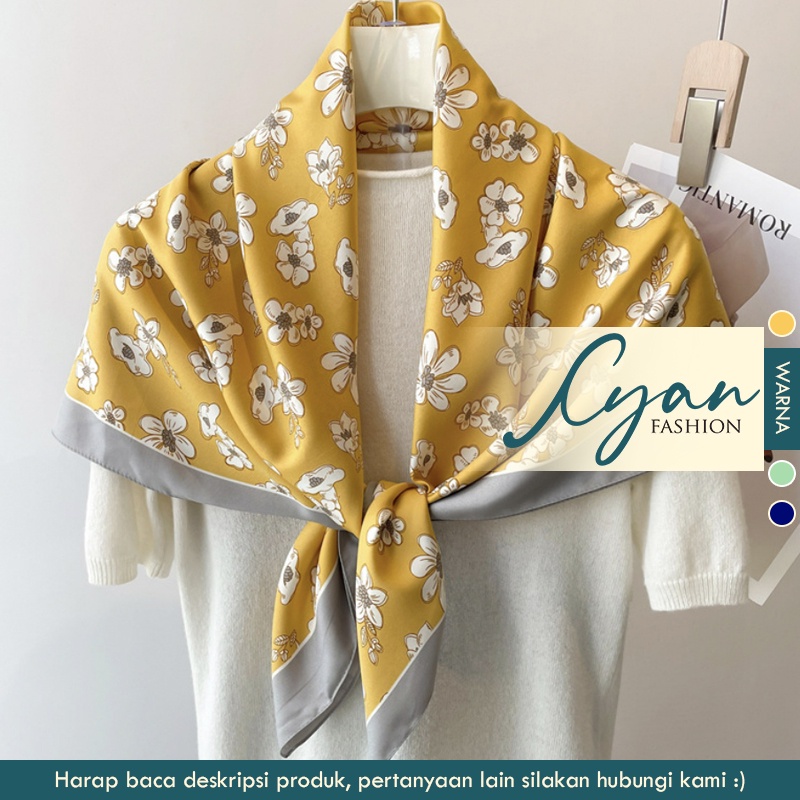 Detail Scarf "Fora" 90 x 90 bahan Sutra Imitasi HIGH GRADE, Scarf Mewah
