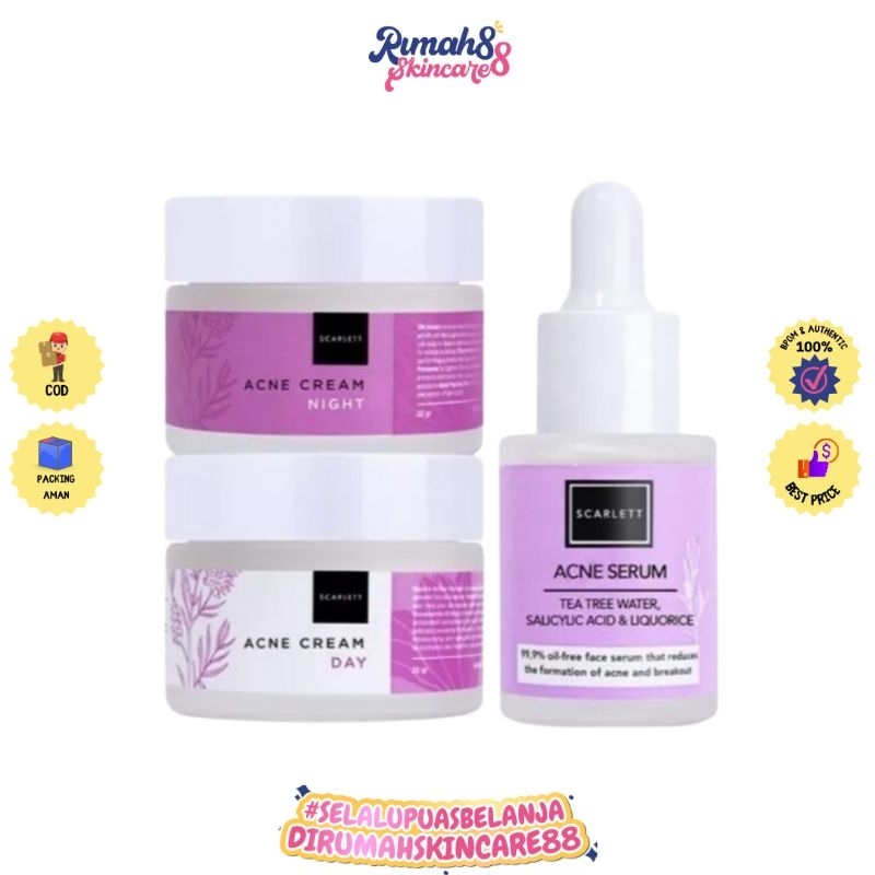 Detail SCARLETT - Acne Series Triple Combo Packages (Acne Serum, Day cream, Night Cream Scarlett)