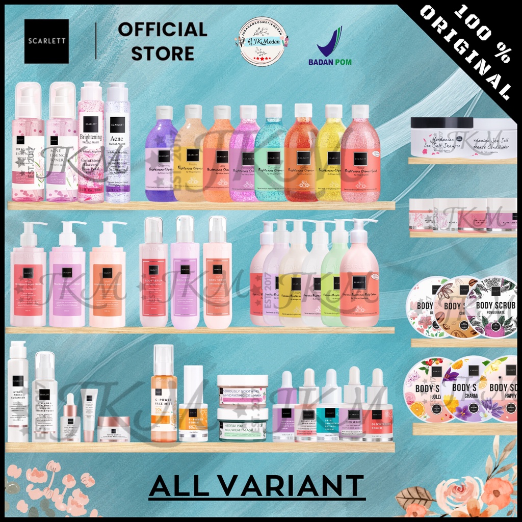 SCARLETT ROMANSA FRESHY CHARMING MANGO JOLLY HAPPY POMEGRANATE COFFEE CUCUMBER PHYTO AGE DELAY GLOWTENING MUGWORT HERBALISM BODY LOTION LULUR BODY SCRUB FACIAL WASH SERUM CREAM ACNE BRIGHT C-POWER BODY CREAM BODY SERUM FACE MIST ACNE BRIGHTLY TO GLOW