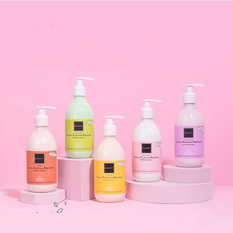 Scarlett brightening body lotion terdapat 5 varian : ☆ Jolly ☆ Romansa ☆ Charming ☆ Fantasia ☆ Freshy