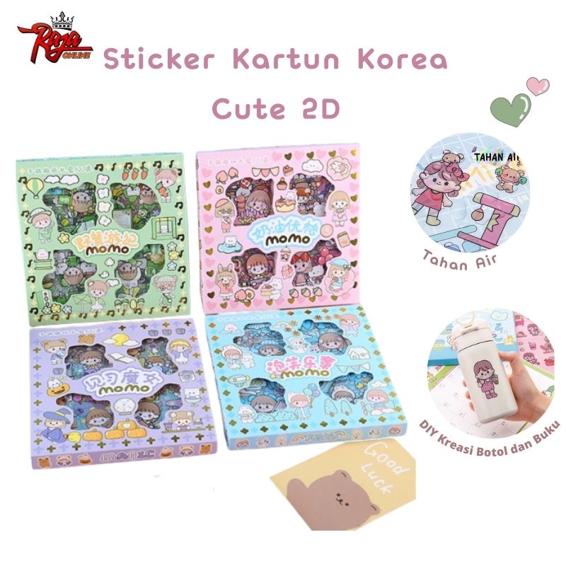 Detail SCK2- 100 Lembar Sticker Motif 2D Kartun Korea Lucu Anti AIr Dapat Box Sticker Botol