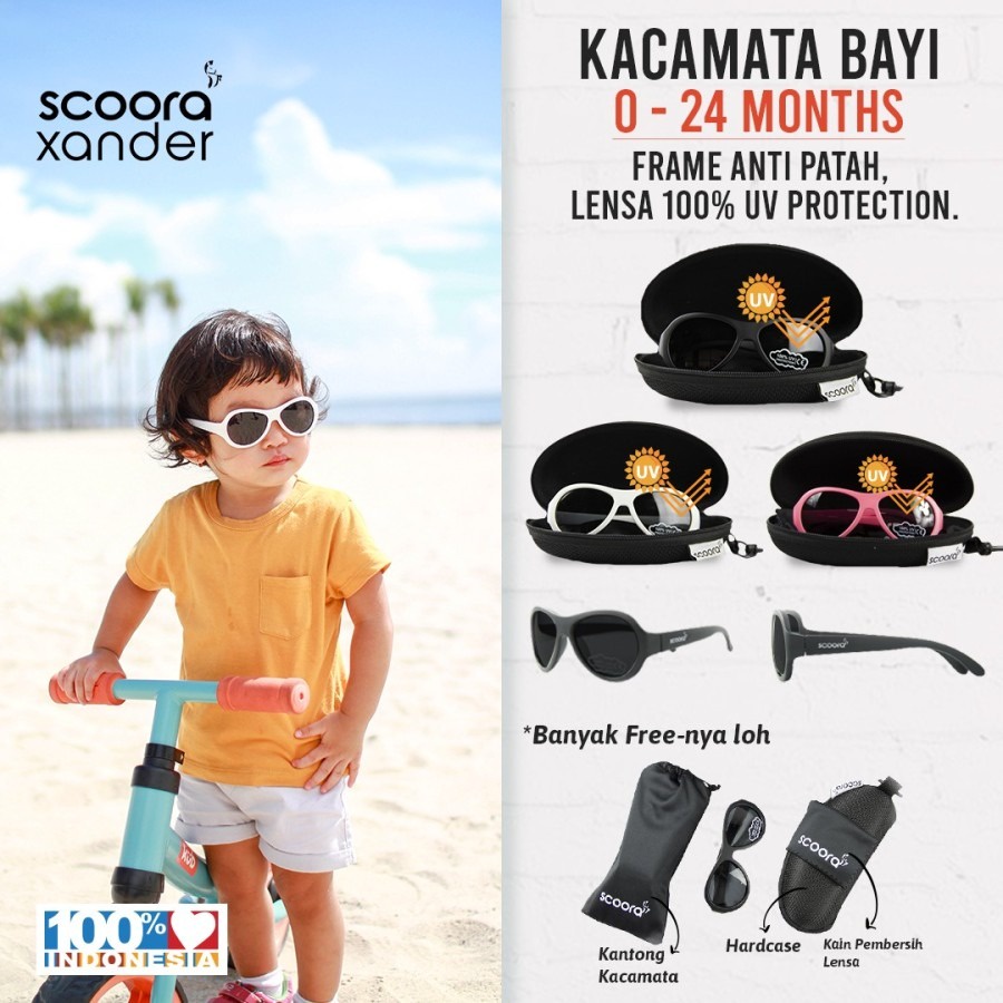 SCOORA Xander merupakan kacamata anti UV pertama dari SCOORA. Melindungi mata si kecil dari bahaya sinar UV juga dari debu dan partikel berbahaya.