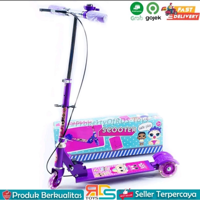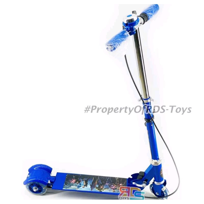 #scooter besi pakai rem tangan , merek import karakter ad beberapa varian warna biru dan pink ,ungu,merah,hijau, ad _+15 karakter kerangka full besi rem tangan bell alaram ban karet piu yg ad lampu.a saat d jalankan pass bangaet buat anak2 anda yg lucu