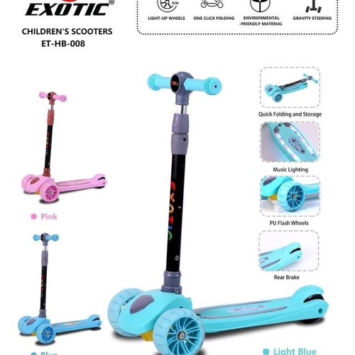 Skuter bisa belok Skuter bisa dilipat Roda depan dan belakang ada lampu dengan putaran tertentu