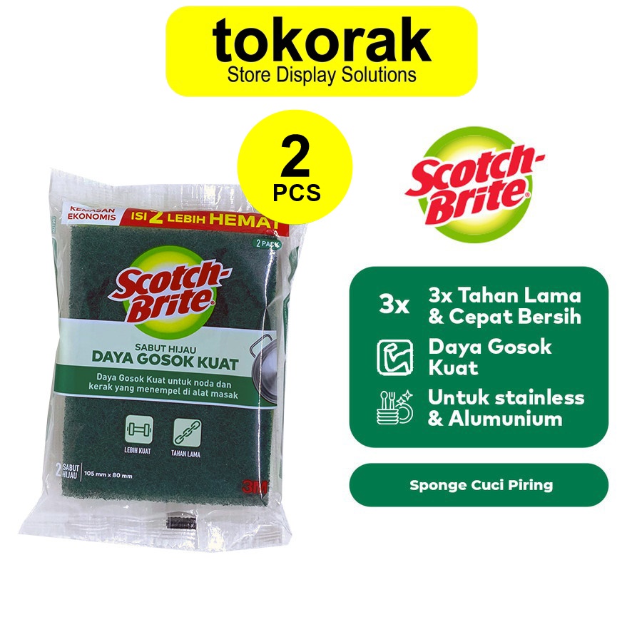 Ukuran : Ekonomis (lebih kecil) 105mm x 80mm Merek : Scotch Brite - Daya Gosok kuat untuk noda dan kerak yang menempel di alat masak - untuk Cuci Piring & Alat Masak dg Harga Murah - 3X Cepat Bersih, 3X Lebih Tahan Lama & satu-satunya sabut dengan partikel penggosok yang ampuh bersihkan kotoran - Untuk peralatan memasak (panci, wajan, dll). - 3X lebih tahan lama dibanding sabut cuci lain - Nyaman digunakan. Untuk peralatan masak stainless steel