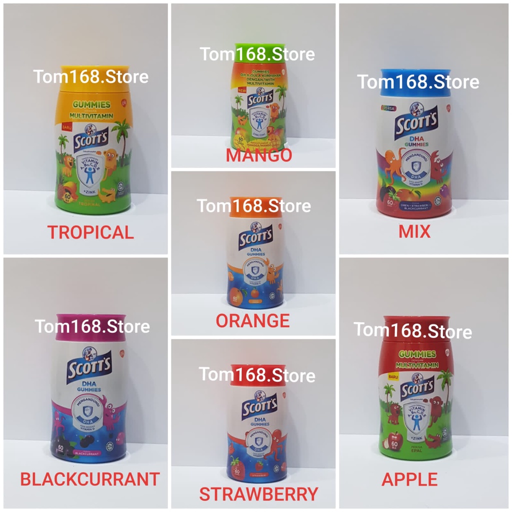 Ibu & Bayi > Kesehatan & Perawatan Bayi > Vitamin & Suplemen Bayi > SCOTTS DHA GUMMIES - ORANGE/STRAWBERRY/TROPICAL/APPLE/MIXED/BLACKCURRANT/MANGO