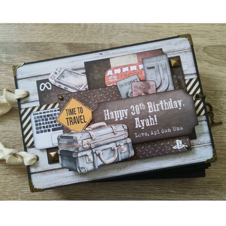 Custom Scrapbook dengan cover 3D yang dibuat khusus sesuai dengan tema yang diminta. Desain diserahkan sepenuhnya kepada pihak BrownBox setelah didiskusikan bersama.