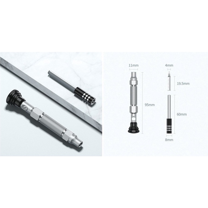 Model: 38-in-1 Aluminum Alloy Screwdriver Set CM372 Item No: 80459 Aluminum Alloy Handel: L94mm Magnetic Extension Bar: L60mm Screw Bits Dimension: L28mm Color: Black