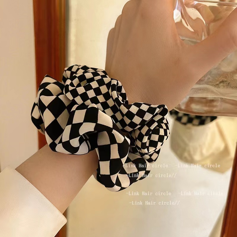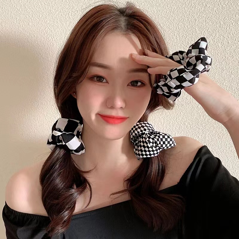 Detail Scrunchie Korean Style Vintage Wanita Motif Kotak-Kotak Fashion Aksesoris Import