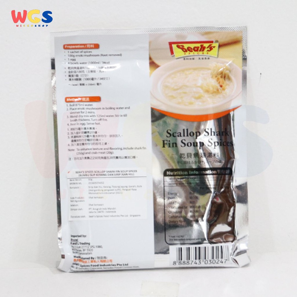 Method 1. Boil 875ml water. 2. Place enoki mushroom in boiling water and simmer for 2 mins. 3. Blend dry mix with 125ml water. Stir in till broth thickens. Turn off fire. 4. Beat in egg. Serve hot. Note: To enhance texture and flavoring, include shark fin (250g) and crab meat (20g).