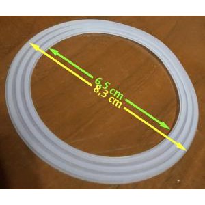 Karet Blender untuk Gelas Juice, cocok untuk blender merek Miyako, Panasonic, Maspion, National, Kirin, Quantum, dan merek blender China Bahan dari karet putih transparan Ukuran: diameter luar = 85 mm, diameter dalam = 65 mm