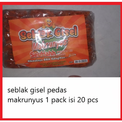 seblak gisel merk makrunyus ciamis dengan rasa pedas enak gurih dan bikin nagih. 1 pack isi 20 pcs eceran 500 an