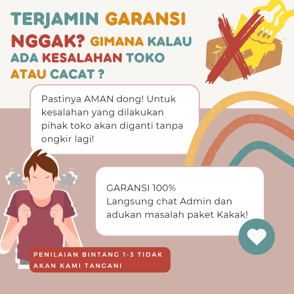 JAMINAN GARANSI! BILA PESANAN TIDAK SESUAI GAMBAR ATAU SIZE SILAHKAN CHAT LEBIH DULU, KAMI GANTI/RETUR TANPA BIAYA LAGI.