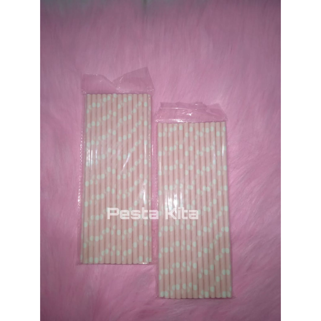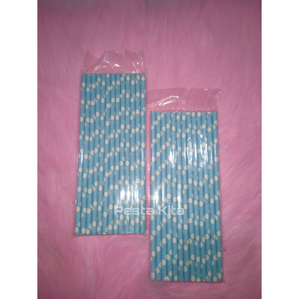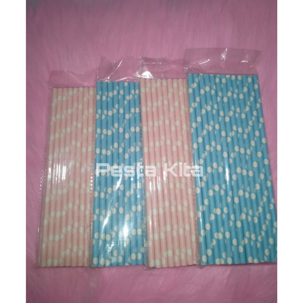 Sedotan Kertas Motif Polkadot / Paper Straw Motif Pink Biru isi 25Pcs