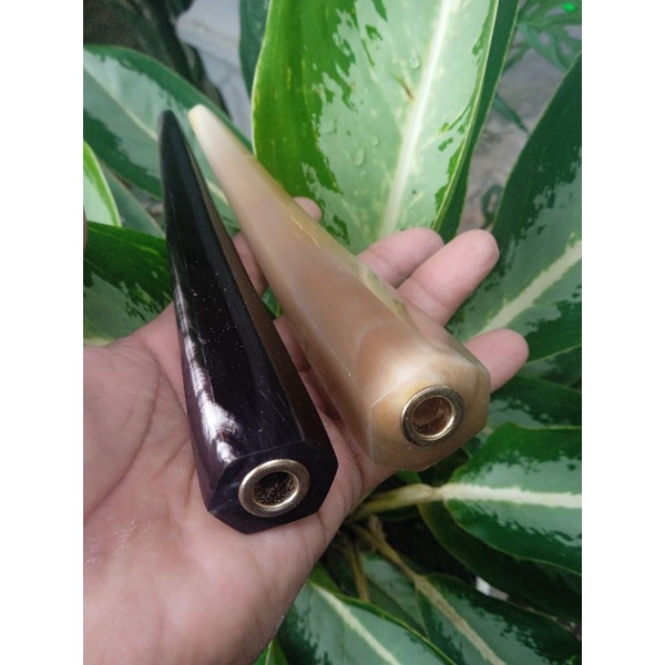 Pipa tanduk kerbau segi enam terbuat dari tanduk kerbau asli original & warna asli hitam dan putih pekat panjang-12-13-14 cm lubang multi fungsi langsung ring minat untuk koleksi