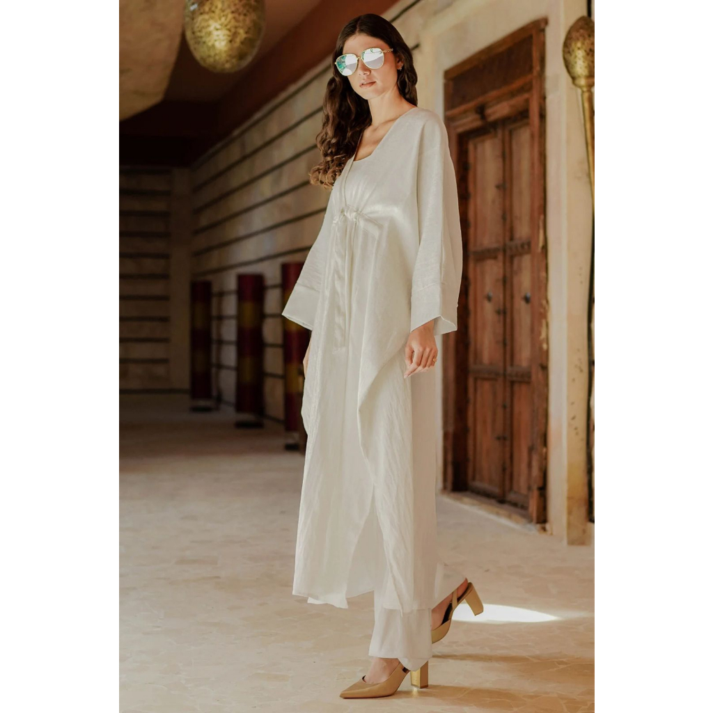 As the special Raya collection, this outer is crafted with an exquisite and modern silhouette. This piece is detailed with an open-front design and finished with a drawstring tie on the waist with ruched detailing for a unique touch. This timeless piece is artfully designed to push through seasons and trends.