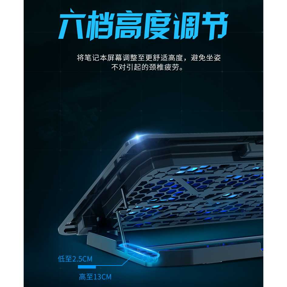 Cooling pad yang dapat menjaga laptop/notebook Anda dari overheat. Cooling pad ini dilengkapi dengan enam kipas yang akan menghasilkan angin yang besar sehingga laptop Anda akan tetap dingin. Selain itu walaupun memiliki kipas yang besar namun tidak akan menghasilkan bunyi yang berisik sehingga tidak menggangu saat menggunakan laptop/notebook. Fitur Desain yang unik dan pintar Notebook Cooling Pad ini memiliki desain yang unik dengan enam kipas. Dan walaupun memiliki enam kipas tidak akan menghasilkan bunyi yang berisik sehingga tidak menggangu Anda saat menggunakan notebook/laptop. Selain itu, cooler laptop ini juga dilengkapi dengan lampuyang membuat dudukan laptop Anda semkain keren. Berkualitas tinggi Notebook Cooling Pad terbuat dari bahan berkualitas sehingga dapat Anda gunakan untuk jangka waktu lama. Selain itu cooling pad ini menghasilkan angin yang tinggi sehingga dapat menjaga laptop/notebook Anda dari overheat USB port USB Fan ini dapat dinyalakan dengan mencolokkan plug USB ke USB port dari laptop/notebook. Tidak perlu menginstall apapun dalam menggunakan cooling pad ini sehingga mudah untuk digunakan. Ringan and portable Notebook Cooling Pad ini memiliki berat yang ringan dan bersifat portable sehingga Anda dapat dengan mudah membawa Notebook cooling pad ini kemanapun Anda pergi.