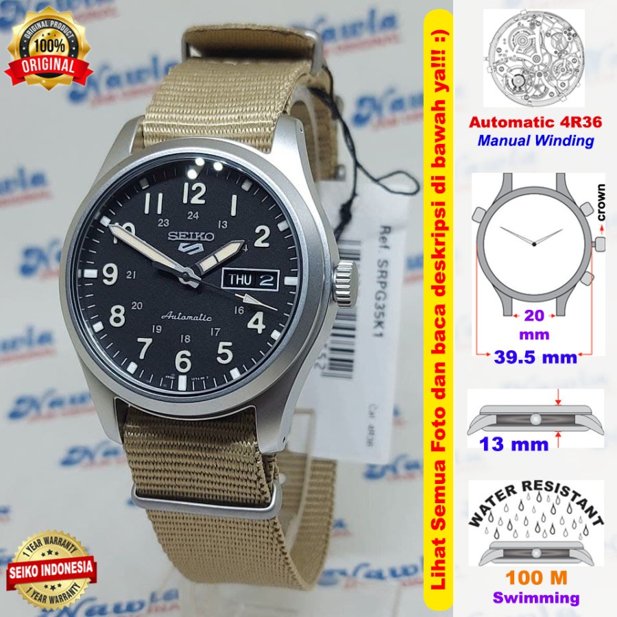 Detail Seiko 5 Sports SRPG35K1 Automatic Beige - Jam Tangan Pria SRPG35