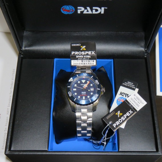 Brand Seiko Model No. SBDN035J Series New Prospex - Special Edition PADI Gender Pria (Bisa sebagai couple dari SBDJ015J) Case diameter 39 mm Exclude Crown Case thickness 12 mm Water resistant Divers watch 200 meters Case material Pure titanium case (hard coating) with Diashield Case back Screw case back Glass material Hardlex crystal Strap material Titanium Clasp Fold over with safety Bold Luminious Hands & Markers Unidirectional Blue Bezel Movement Solar Powered Caliber No. V157 Dial color Blue Date display
