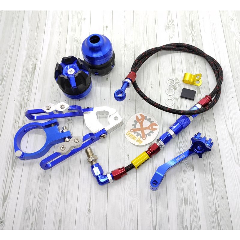 Otomotif > Suku Cadang Motor > Kabel & Selang > Selang rem depan serat PSI 95 CM+kleman selang+jalu as roda+paha rem universal motor matic dan bebek