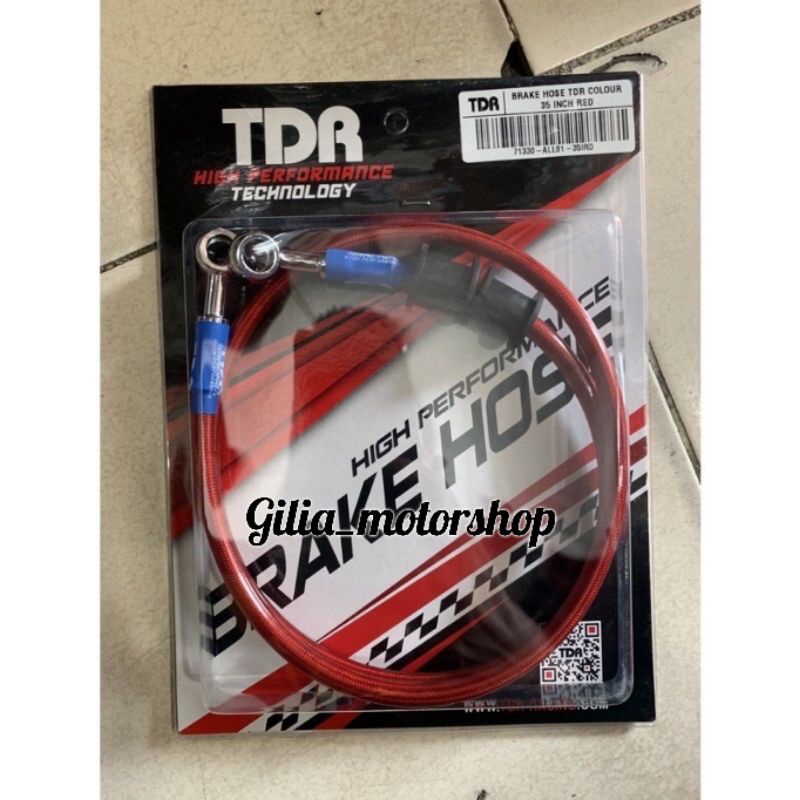 Detail Selang Rem Depan TDR 35 Inci 90 cm Original Universal Motor Kabel Selang Silver Merah Biru