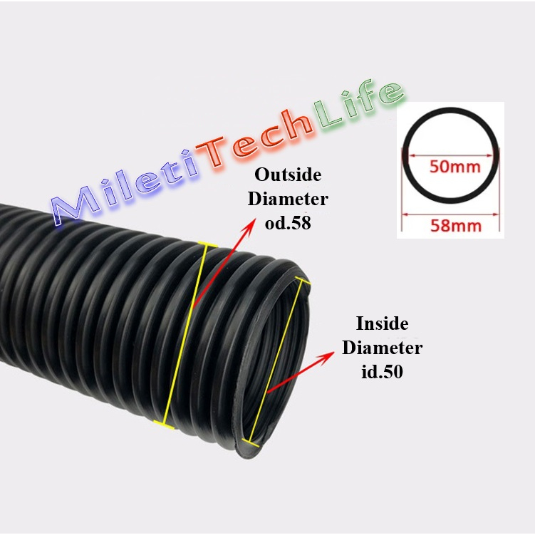 Selang Vacuum Cleaner ID.50mm OD.58 Selang untuk mesin vacuum cleaner wet and dry besar, vacuum industrial, seperti mesin vacuum Sanyo, Hitachi, Sharp, Toshiba, Haier, Midea, LG, Panasonic, dll