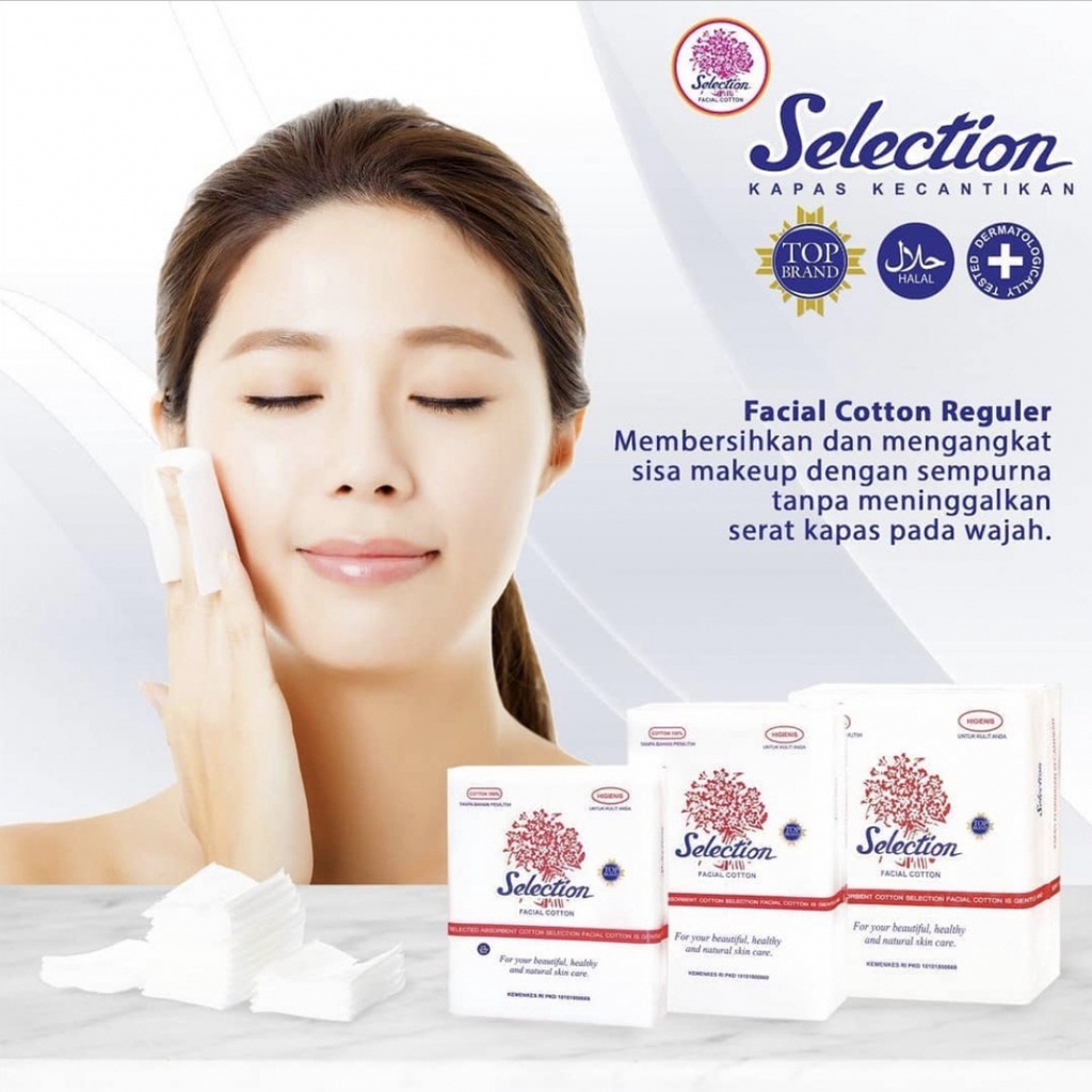 Selection Facial Cotton halus dan lembut untuk perawatan kulit anda, Selection Facial Cotton tidak mengandung merkuri dan klorin sehingga sangat aman digunakan sehari-hari.