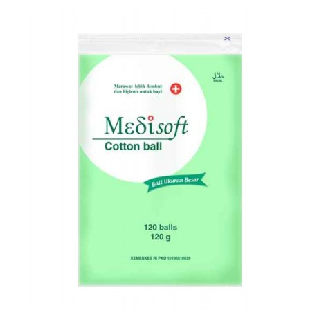 Medisoft cotton ball 120pcs (75gr) Lembut dan aman digunakan untuk perawatan bayi dan luka. Dipacking dengan kemasan klip sehingga lebih mudah untuk disimpan dan digunakan kembali