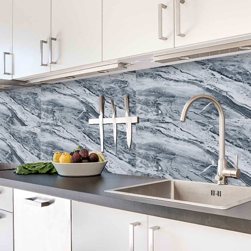 Perlengkapan Rumah > Dekorasi > Wallpaper & Stiker Dinding > Self-adhesive Simulasi Ubin Marmer Stiker Dinding Cuttable Oil-proof PVC DIY Art Dekorasi Tahan Air Anti Gores Untuk Dapur Kamar Mandi Aula Dinding Decals Meja Stiker