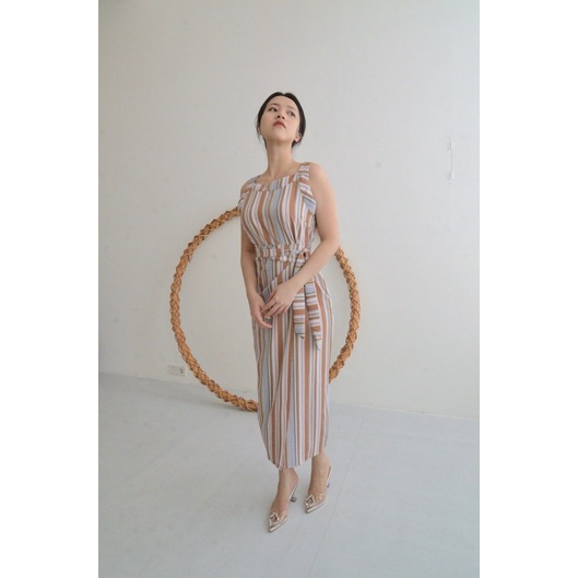 Pakaian Wanita > Dress > Midi Dress > Selim Label Pamela Dress Wrap Dress Crinkle Stripes Dress Midi Dress Lilit