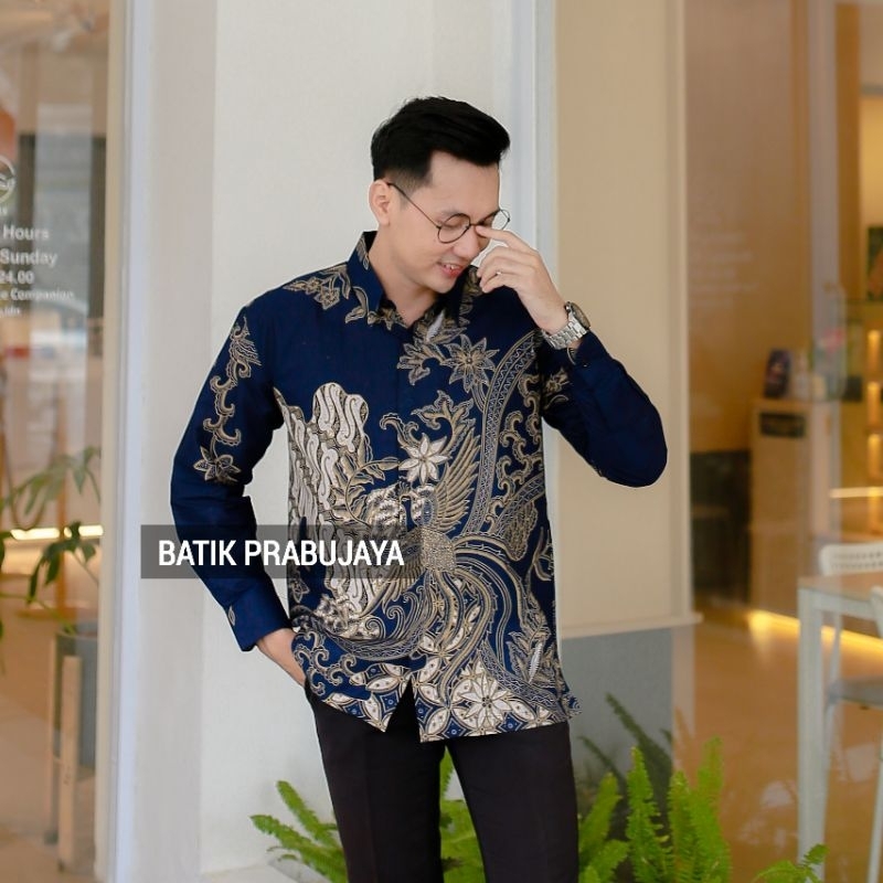 SELING NAVY Kemeja Batik Pria Lengan Panjang Modern Premium Jumbo Slim fit - Baju Batik Pria Cowok Kondangan Pesta Seragam Sragam Kerja Kantor