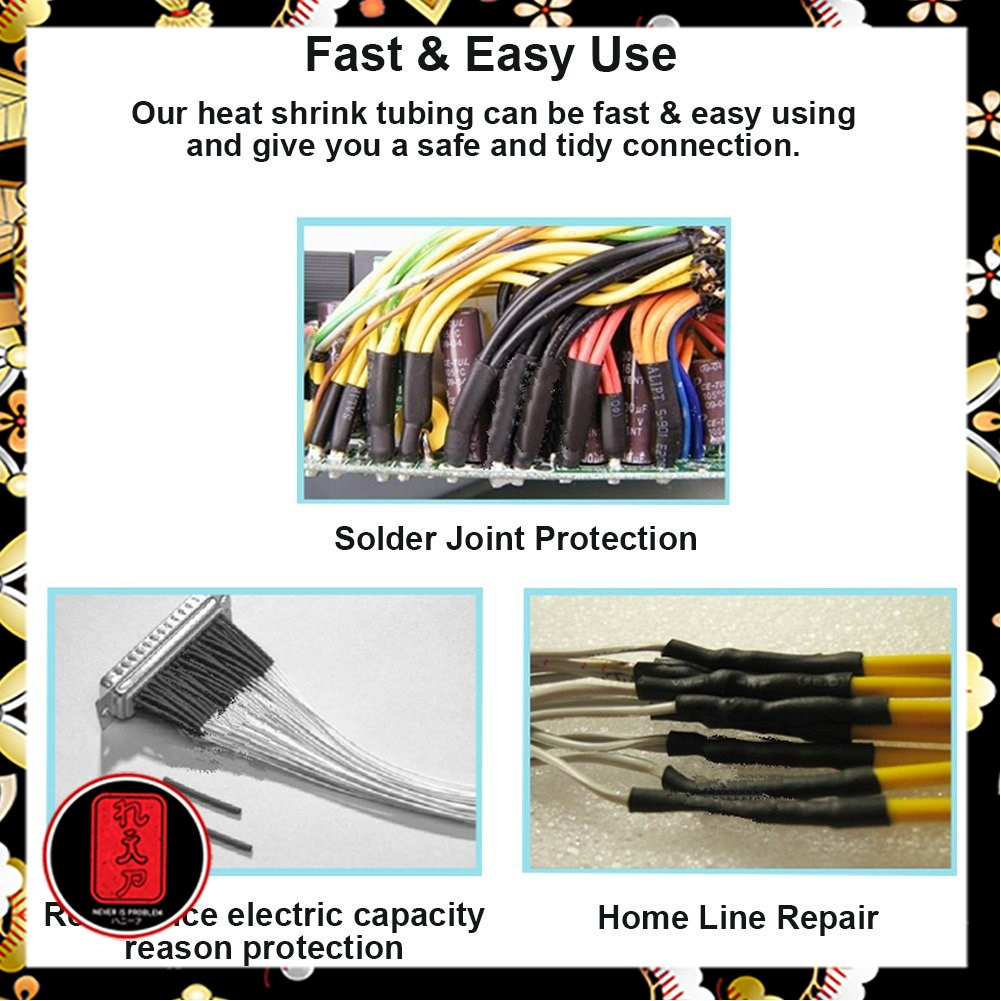 Selongsong pelapis kabel ini digunakan pada sambungan kabel, titik solder untuk melindungi ujung kabel, perlindungan dan insulasi modul elektronik, perlindungan karat logam (anti korosi), dan lain-lain. Pelapis kabel ini terdiri dari berbagai varian ukuran sehingga dapat disesuaikan pada ukuran kabel yang ada di rumah Anda.