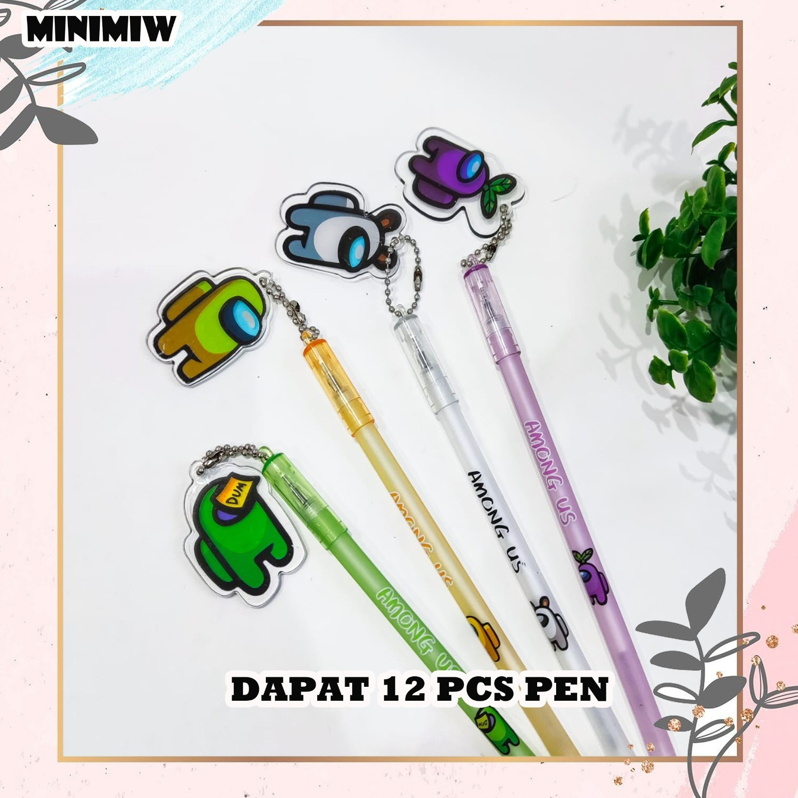 "SELUSIN PULPEN GANTUNGAN AMONG US GEPENG ISI 12 PCS BOLPEN ALAT TULIS BOLPOIN UNIK IMUT MURAH PEN GEL KARAKTER PENA UNIK LUCU MURAH"