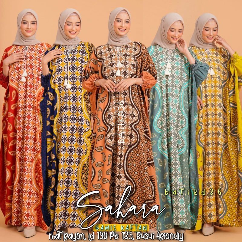 (Semerbak) gamis wanita kaftan Sahara corak kawung besar lengan balon ccok untuk ibu ibu remaja Kekinian Bahan Rayon Super Gamis premium murah banget rayon halus kaftan adem wanita busui friendly ibu motif diskon motif batik muslim panjang baju tidur