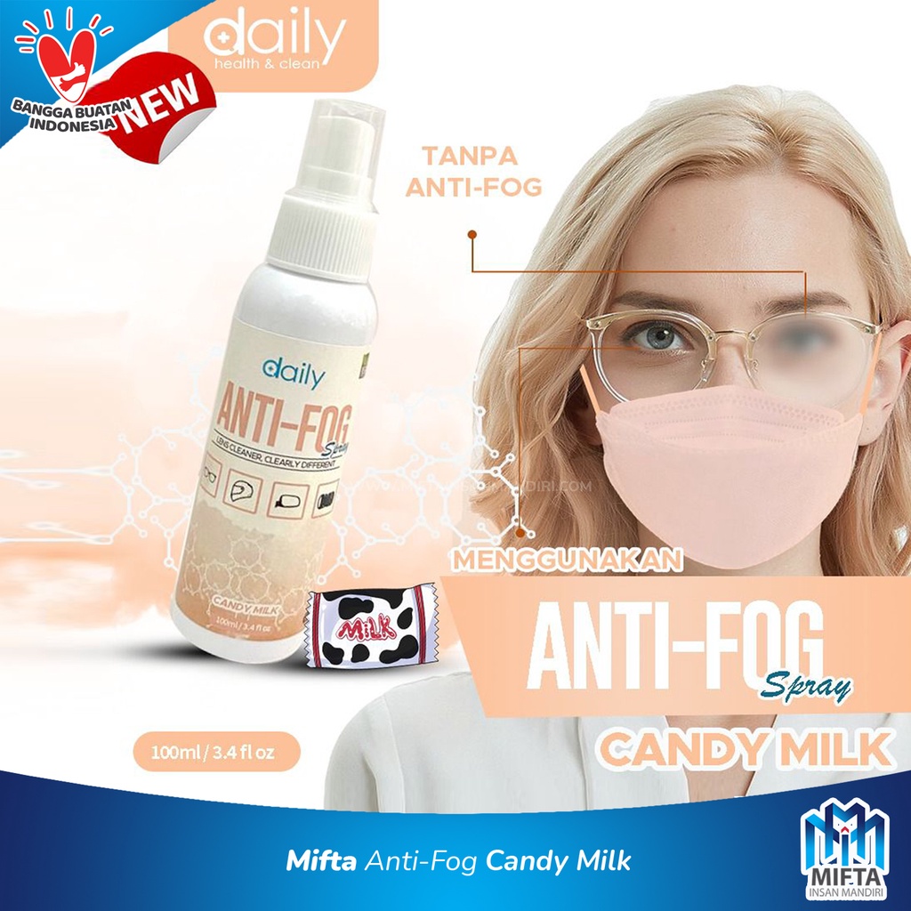 Daily anti fog spray merupakan produk yang diciptakan untuk membantu dalam menyelesaikan masalah embun pada kacamata saat memakai masker, pada visor, spion saat hujan dan juga lensa kamera. Selain itu spray ini dapat membersihkan kotoran serta merawat kaca.