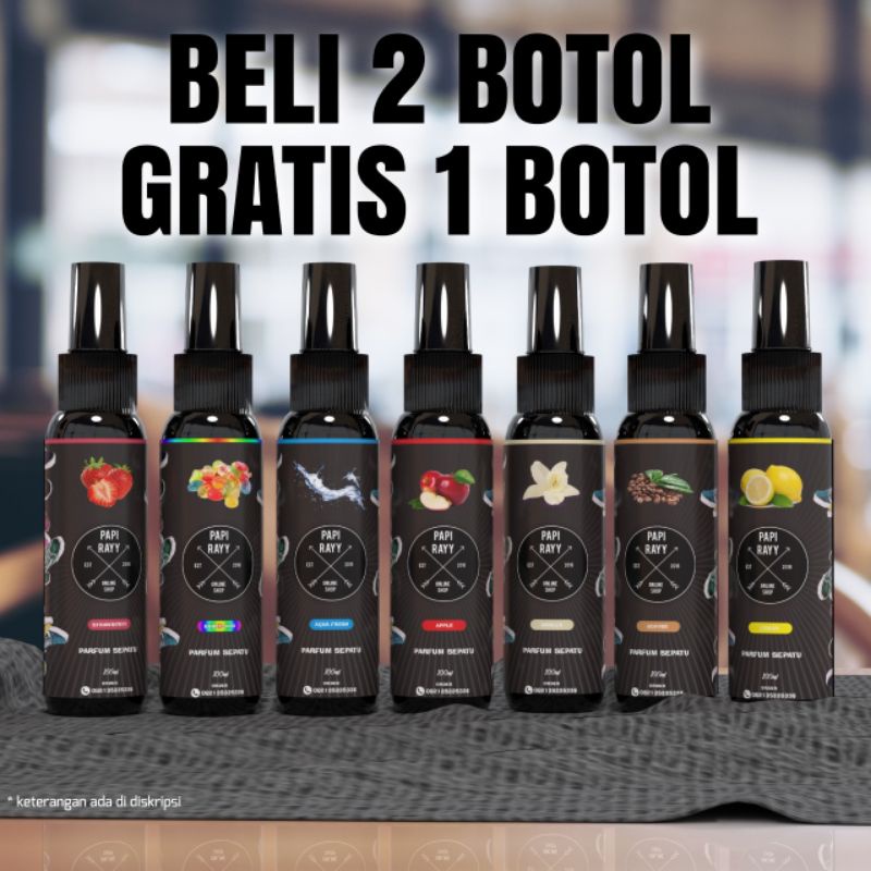keunggulan : - membunuh bakteri penyebab bau tak sedap - Bahan premium quality yang membuat wangi bertahan lama awet berhari hari - tersedia 6 macam varian aroma pewangi yaitu Coffee, vanila, buble gum, apel, Lemon dan Aqua Fresh - bisa digunakan untuk lainnya seperti helm jaket kaos kaki tas dan lain2