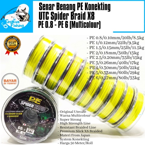 Detail Senar Benang PE UTC Spider Braid X8 Braid (PE 0.8 - PE 6) 50M/Roll Konekting Super Strong - Engkus Fishing
