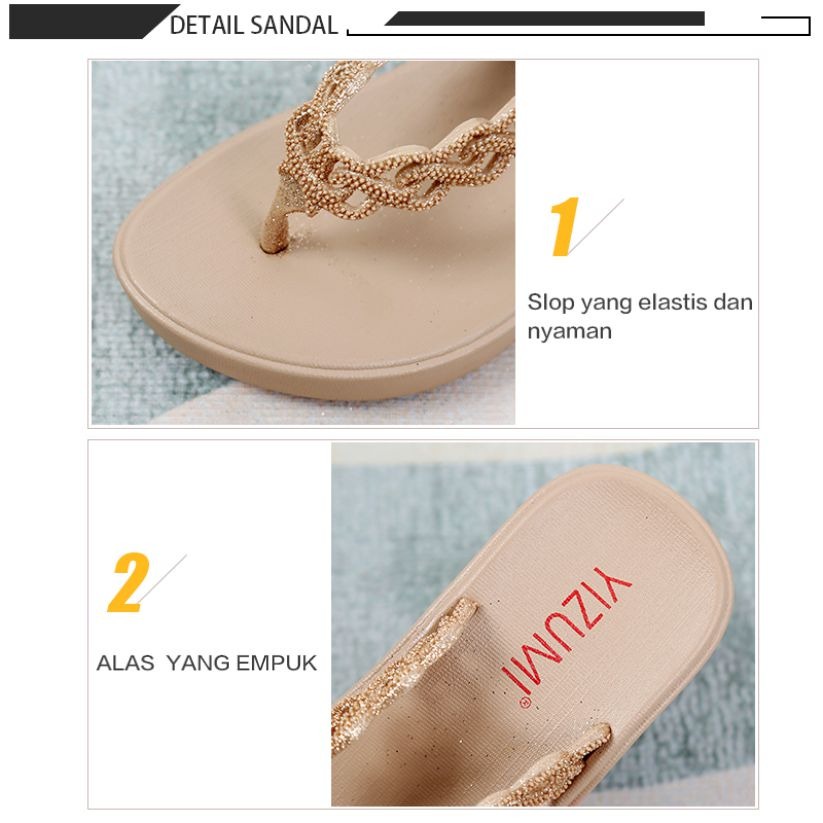 Sandal wanita YIZUMI dengan desain yang kekinian dan elegan Sendal ini terbuat dari bahan yang bagus sehingga nyaman dan ringan dipakai. sandal ini sangat cocok dipakai untuk diberbagai acara.