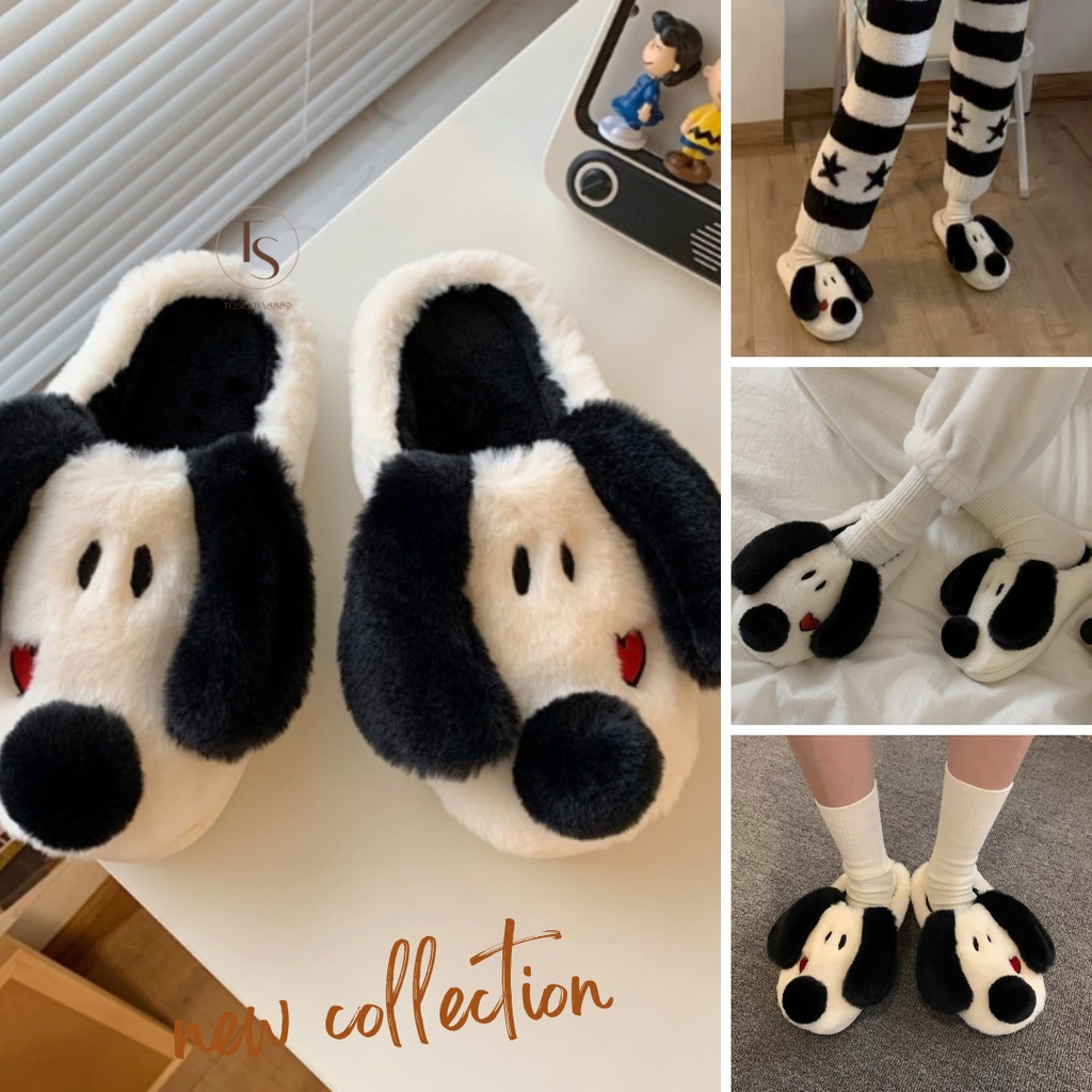 Detail Sendal Rumah Indoor Home Slipper Sandal Kamar Hotel Empuk Sandal Bulu Motif Puppy Snoopy Lucu