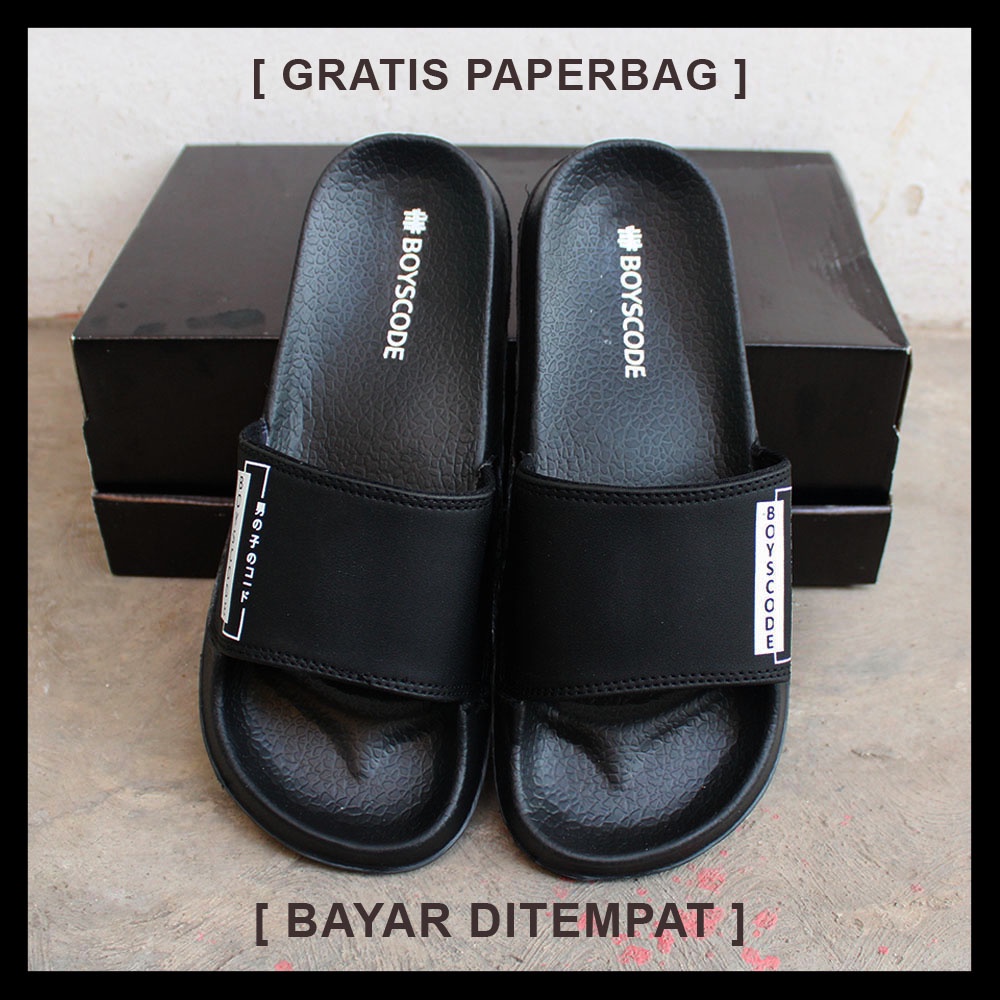Detail Sendal Selop Distro Pria Boyscode Premium Original + FREE Paperbag / Sendal Slide Pria / Sendal Slop Model : Sendal Selop/Slide