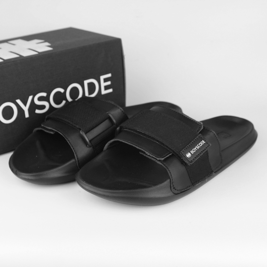Detail Sendal Selop Pria Distro Strap Boyscode Ethernal Original Fullblack / Sendal Slide Pria / Sendal Slip On