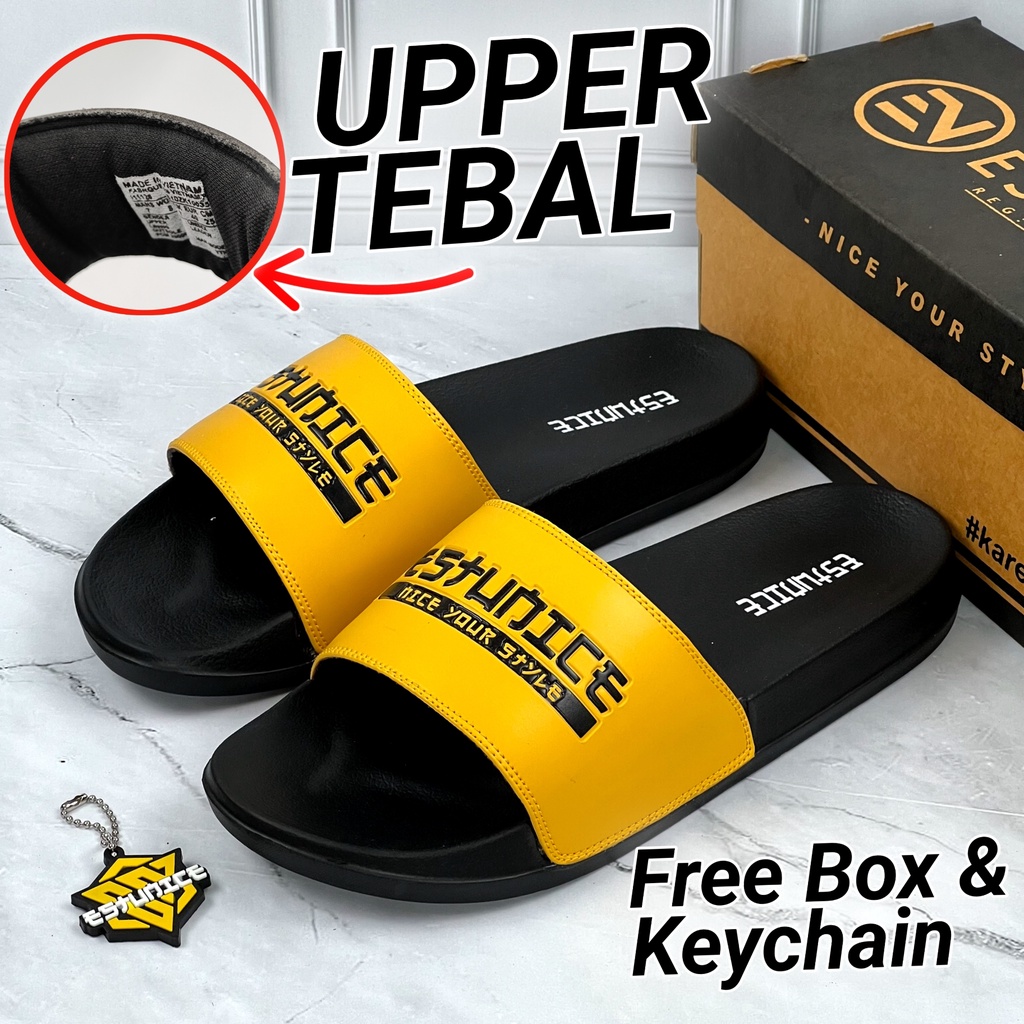 Sandal slop untuk kamu yang ingin tampil gaya. Selain nyaman, model yang simpel dan tulisan yang kekinian membuat sandal ini sangat digemari oleh pria maupun wanita.