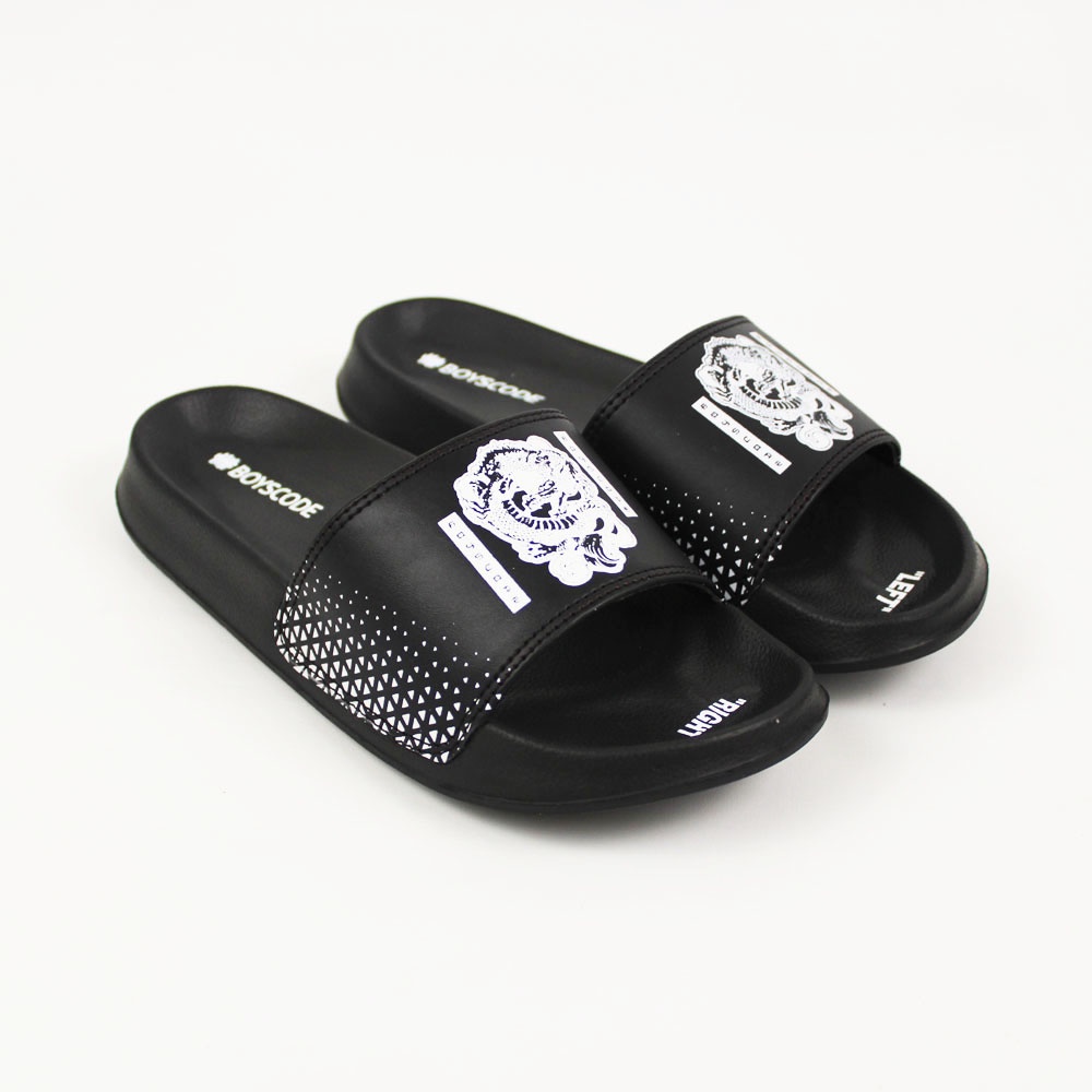 Sendal Slop Pria Wanita BOYSCODE Angry Dragon Hitam / Slide Pria / Slip On Pria / Sendal Cowok / Sendal Cewek
