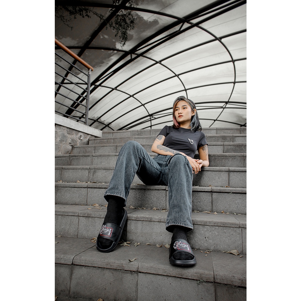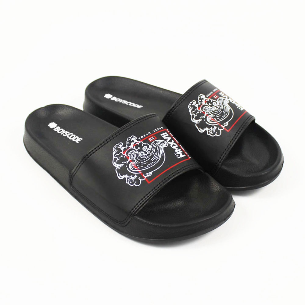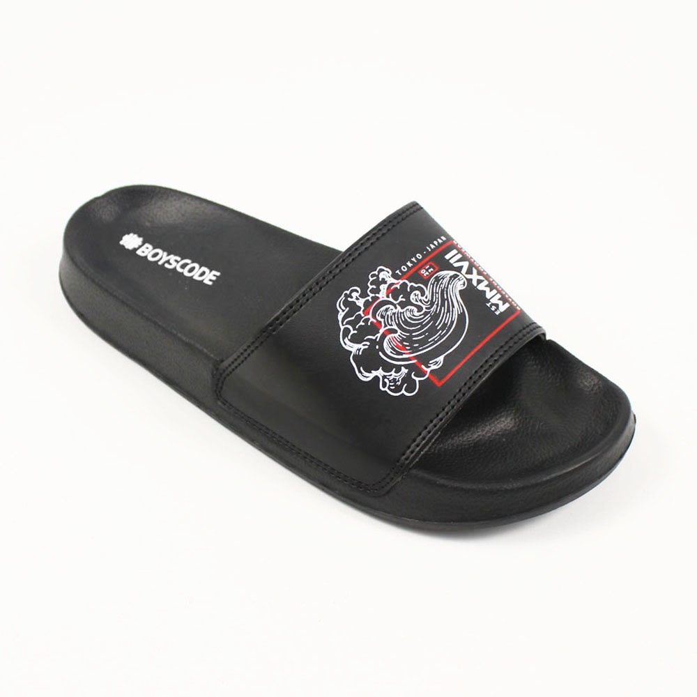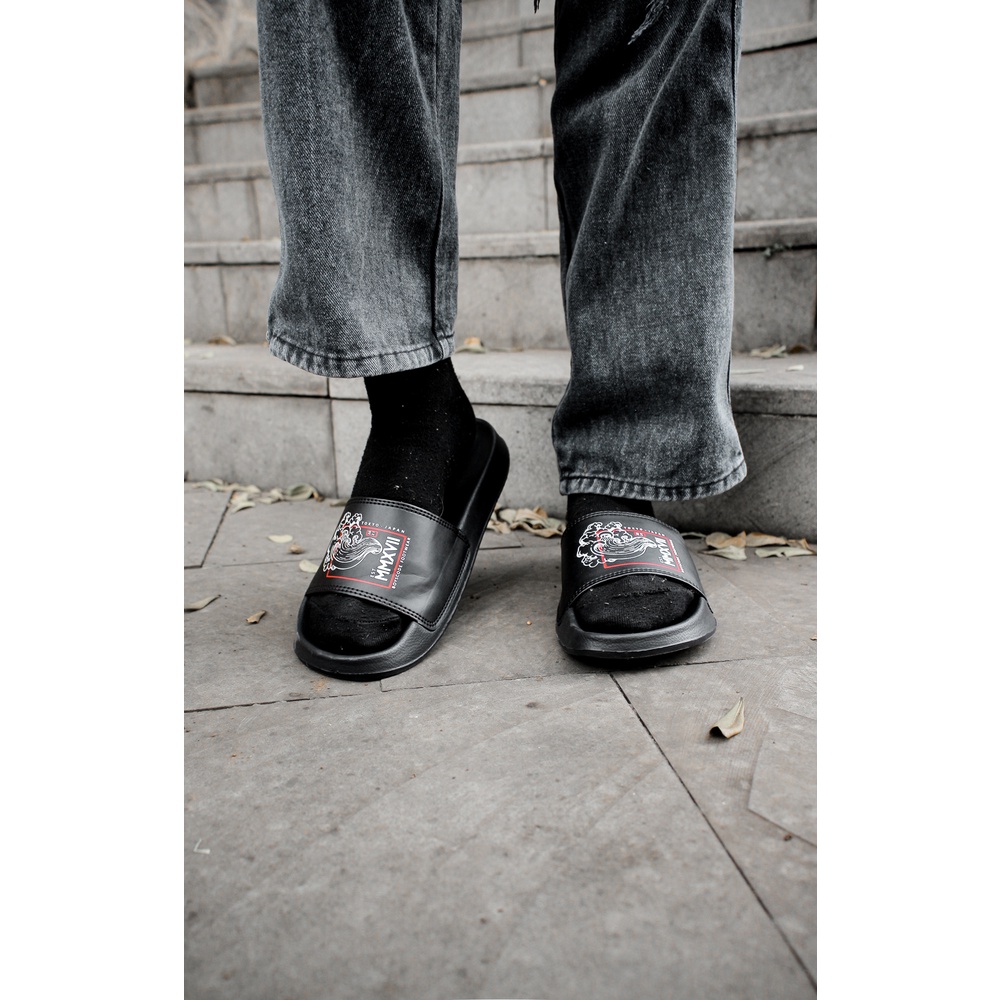 Sendal Slop Pria Wanita BOYSCODE Japanesse Wind Black Hitam / Slide Pria / Slip On Pria / Sendal Cowok / Sendal Cewek