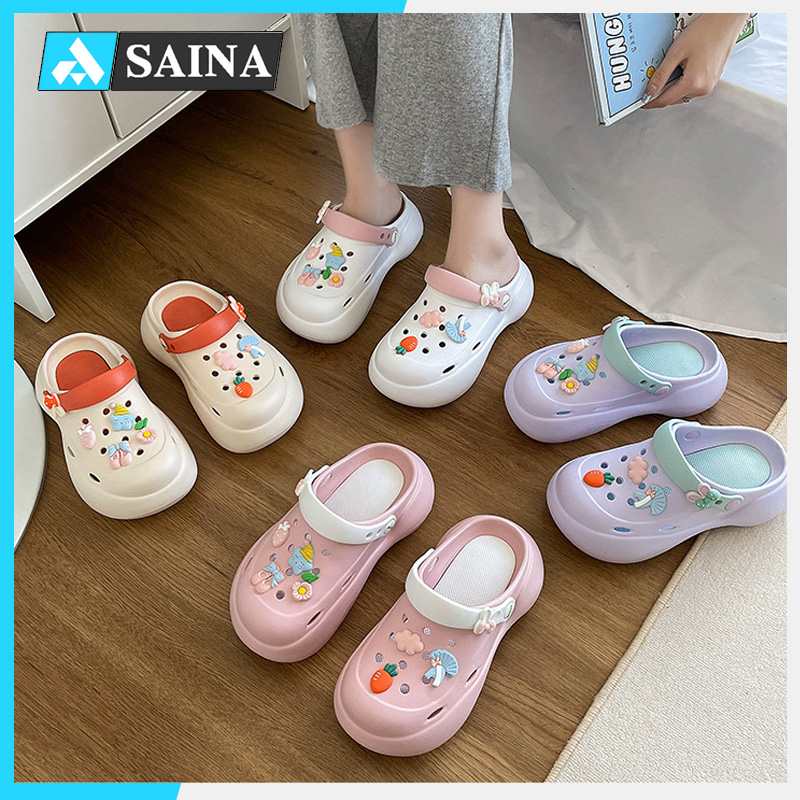 Sepatu Wanita > Wedges > Sendal Wedges Wanita Import Terbaru Jibbitz Slip On Sandal Kodok Kekinian Baim Crocs Fuji Viral Stiker 3D Sandal Selop Platform Soft Empuk Eva Sol Tebal