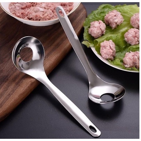 Fitur: Terbuat dari baja tebal, tahan lama dan nyaman. Lubang kebocoran elips dirancang oleh tangan manusia yang menarik pil, dan efek membentuk bakso itu bagus. Bakso, udang, dan pil sayur bisa dibuat. Ketika sendok ditekan, bakso dapat dibentuk, dan mudah dan mudah untuk tidak menodai tangan.
