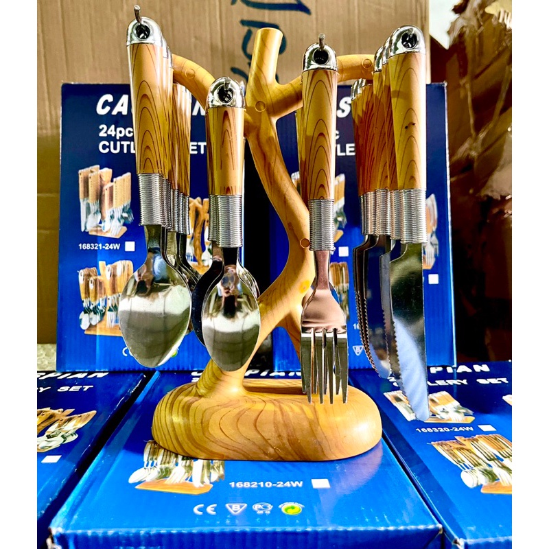 Sendok Set CASPIAN Motif Kayu 24 Pcs Cutlery Pisau Garpu Makan Dapurstand terbuat dari plastiksangat cantik dan cocok digunakan untuk dirumah ataupun untuk jamuan kerabat anda. terbuat dari bahan stainless steel anti karat