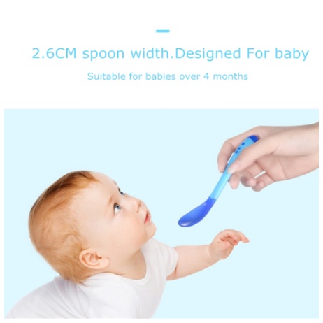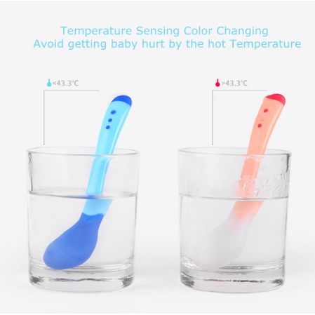 Sendok dan Garpu Anak Bayi dari Silikon ini akan berubah warna menjadi putih apabila terkena panas suhu di atas 38° dan kembali menjadi warna asli sendok saat panasnya berkurang untuk mencegah bayi dari panas