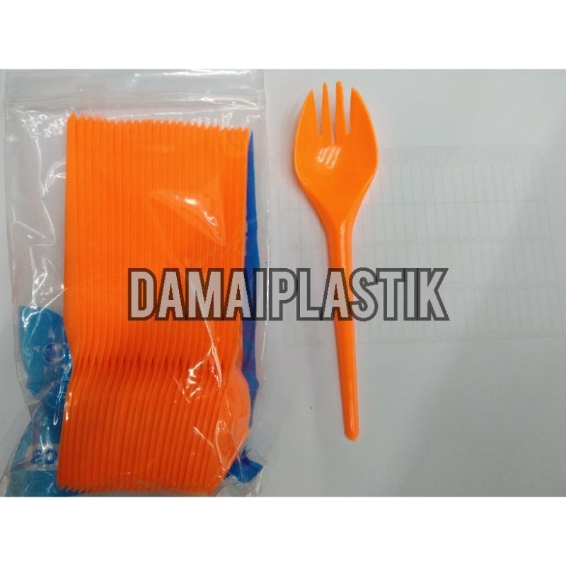 Detail Sendok Garpu Makan Plastik 2in1 Sendok Spork Orange