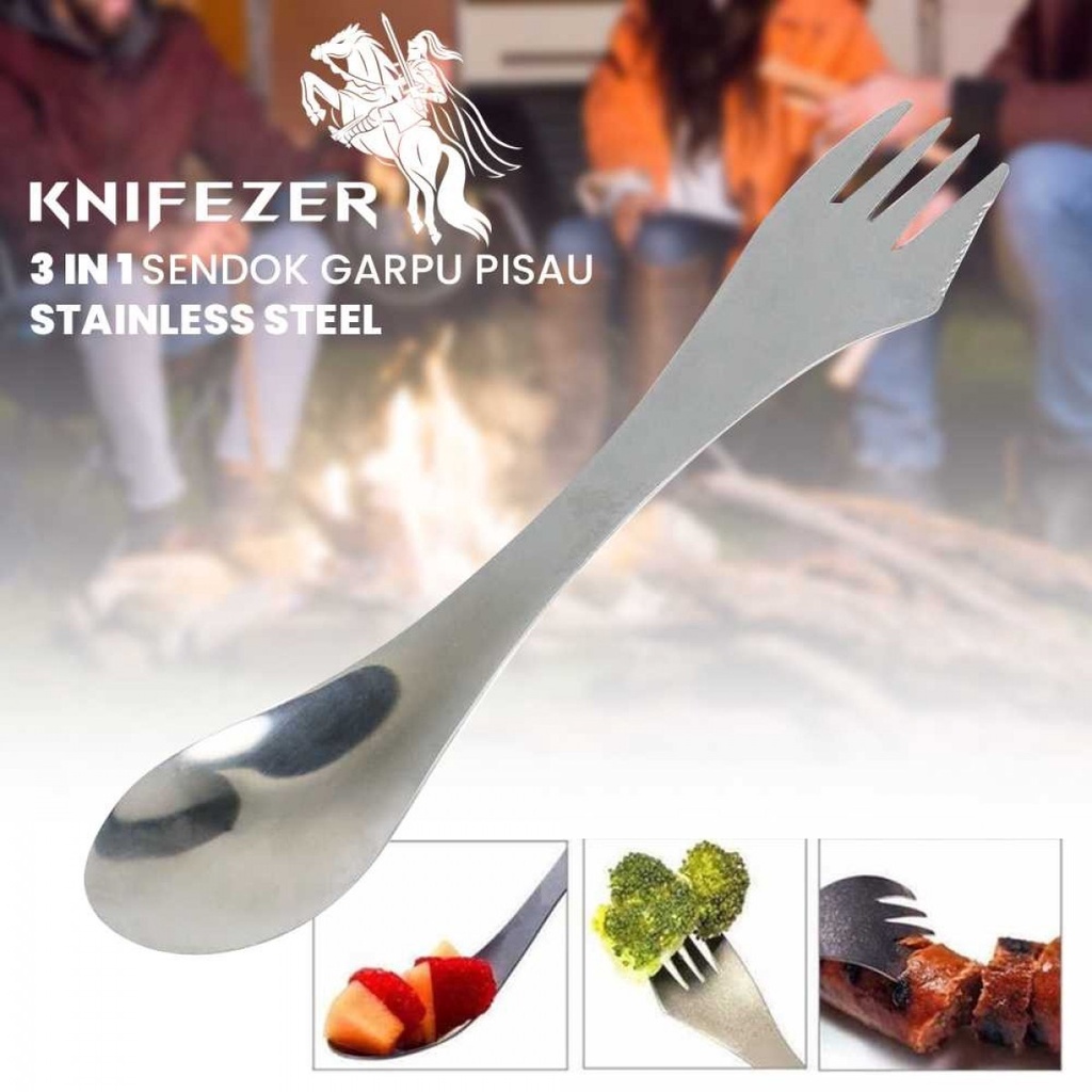 Garpu,sendok & pisau yg menjadi satu sekaligus. Terbuat dari bahan material stainless steel berkualitas. Cocok untuk Anda yg gemar piknik,hiking,ataupun digunakan sehari-hari.